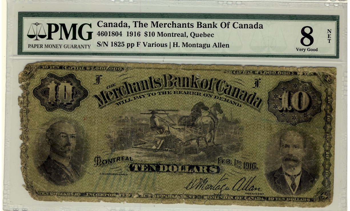 The Merchants Bank of Canada 1916 $10 #1825 CH-460-18-04 PMG VG8