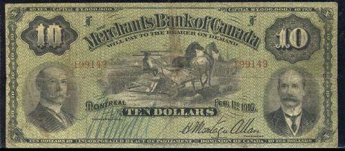 The Merchants Bank of Canada 1916 $10 199149 CH:460-18-04 About Fine. Scarce!