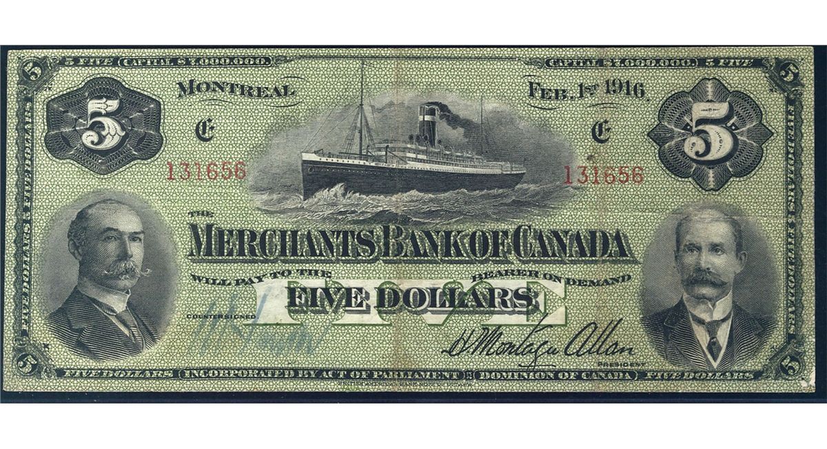 The Merchants Bank of Canada; 1916 $5 #131656 CH-460-18-02 PMG VF25.
