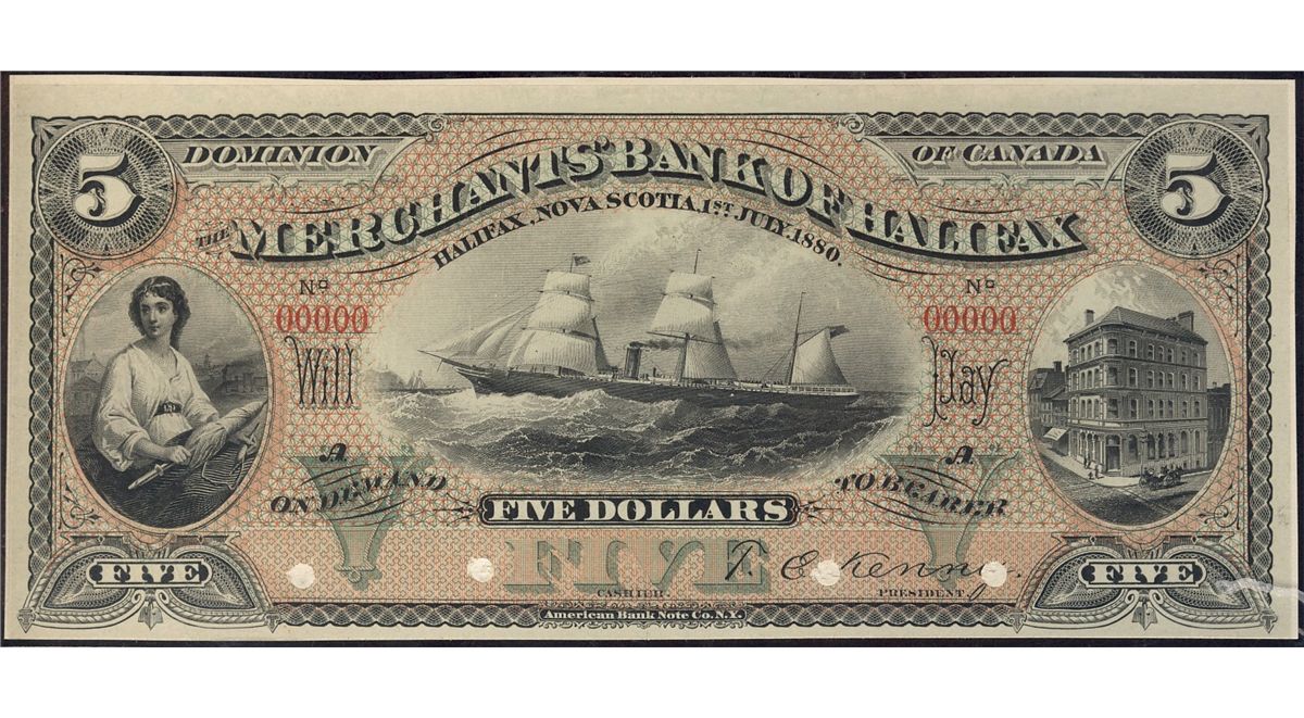 The Merchants Bank of Halifax; 1880 $5 Face & Back Proof. PCGS CH UNC64PPQ & UNC66PPQ respectively.