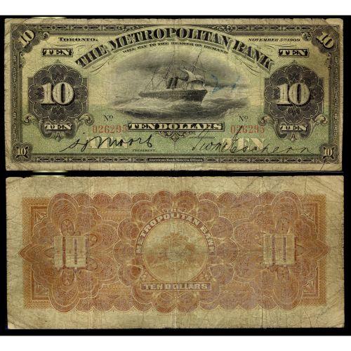 The Metropolitan Bank 1909 #10 #026295 CH-485-10-14 about Fine, light crayon mark. Rare example