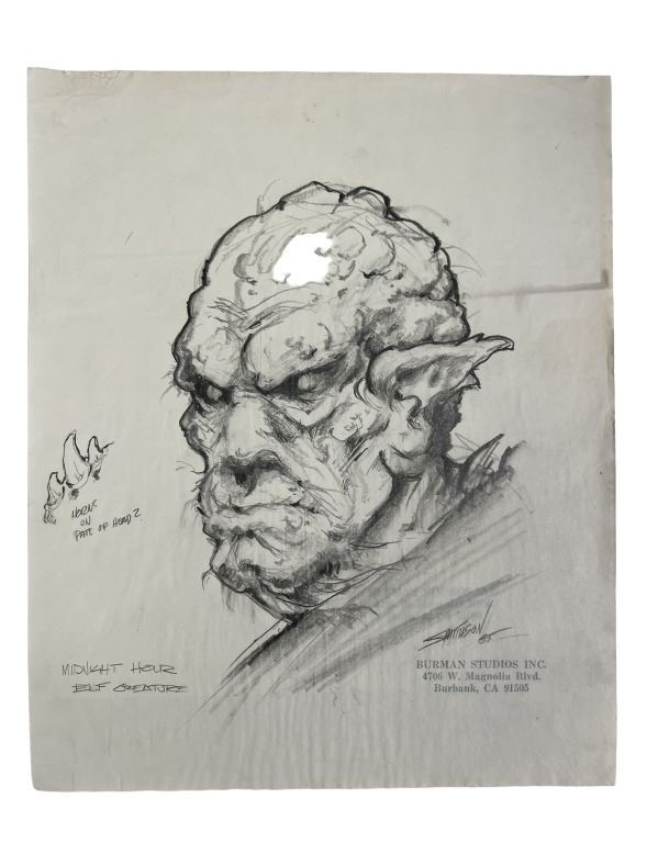 Original set of 6 pieces of hand drawn artworks used on the production of the Jack Bender directed television comedy horror film 'The Midnight Hour' (1985), which focuses on a small New England town that becomes overrun with zombies, witches, vampires, and all the other demons of hell after a group of teenagers unlocks a centuries-old curse on Halloween.
