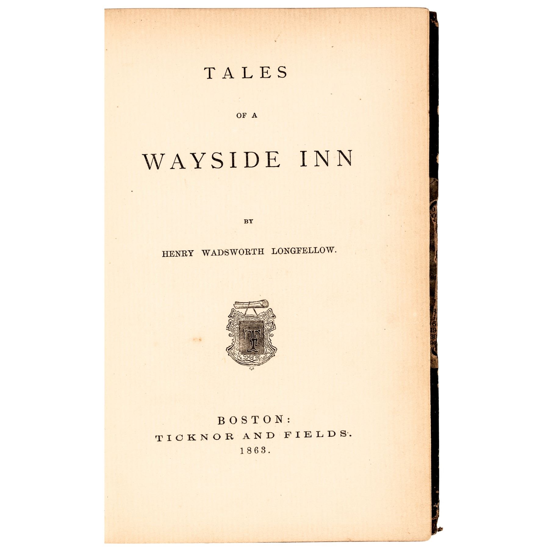1863-Dated First Edition Book titled, “TALES OF A WAYSIDE INN” by Henry Wadsworth Longfellow, Containing the First Appearance in Book Form of “The Midnight Ride of Paul Revere.” published by Ticknor and Fields, Boston, Fine.