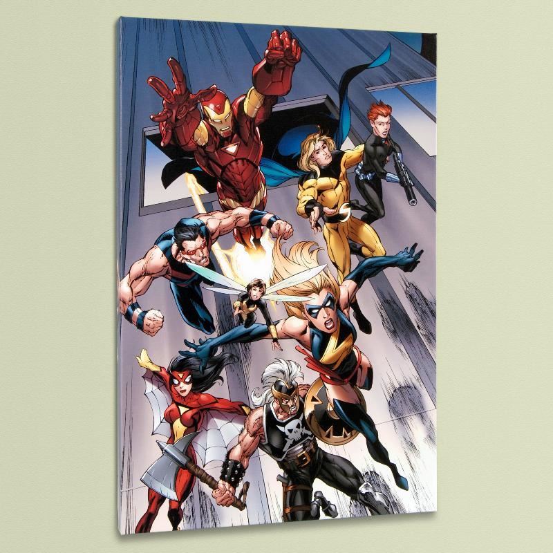 A piece of comic book history, this limited edition, from original art by Mark Bagley, depicts classic marvel characters such as Ms. Marvel, Wasp, Spider Woman, Black Widow and Iron Man. Mark Bagley got his start by winning Marvel's Try-Out contest, for which he was awarded penciling jobs. Soon, Bagley was drawing regularly for the renowned Spider-Man franchise. "The Mighty Avengers #7" is a limited edition numbered giclee on stretched canvas by Mark Bagley presented by Marvel Comics. This piece comes gallery wrapped. Includes Certificate of Authenticity! Measures approx. 18" x 27" (image); 1.5" (depth).