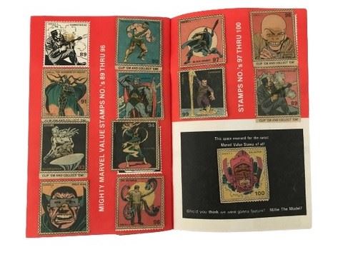 The Mighty Marvel Value Stamp Book, a portal to a bygone era of comic book wonder! Filled with original, collectible stamps, this book features the iconic heroes and villains that shaped the Marvel Universe.
