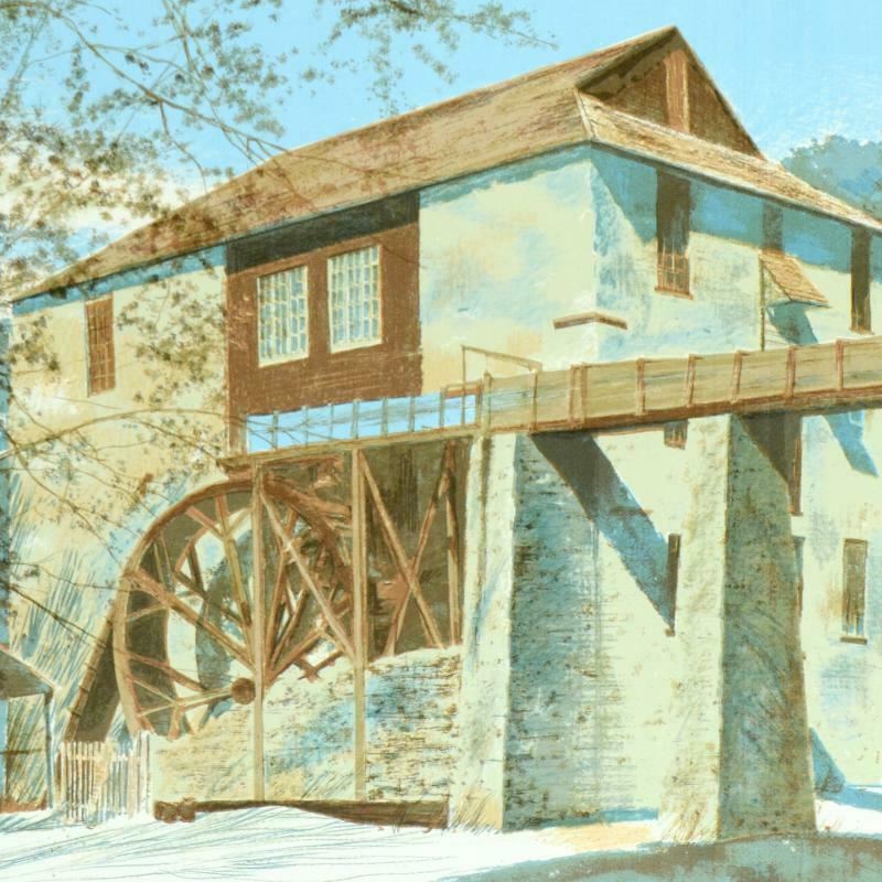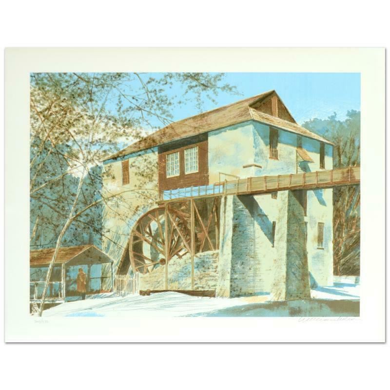 "The Mill" is a limited edition serigraph on paper by William Nelson, numbered and hand signed by the artist! Measures approx. 29" x 22" (with border); 25" x 18" (image).