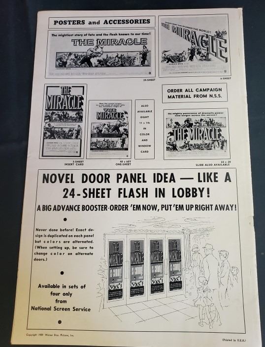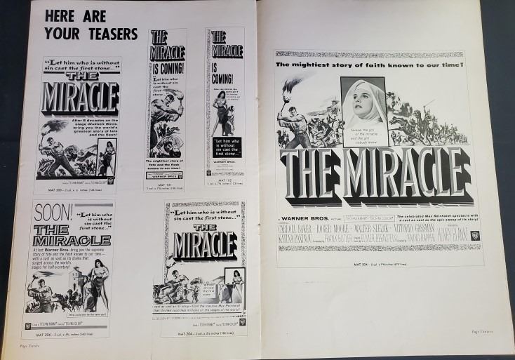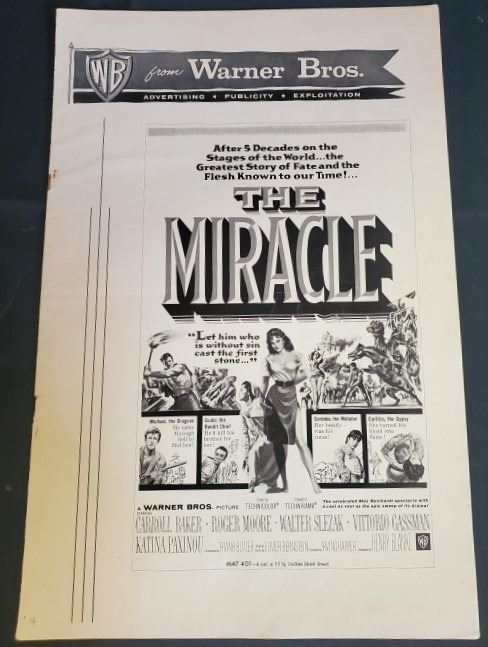 "The Miracle" 1959 Press Book The Miracle Starring Carroll Baker Roger Moore Walker Slezak Vittori