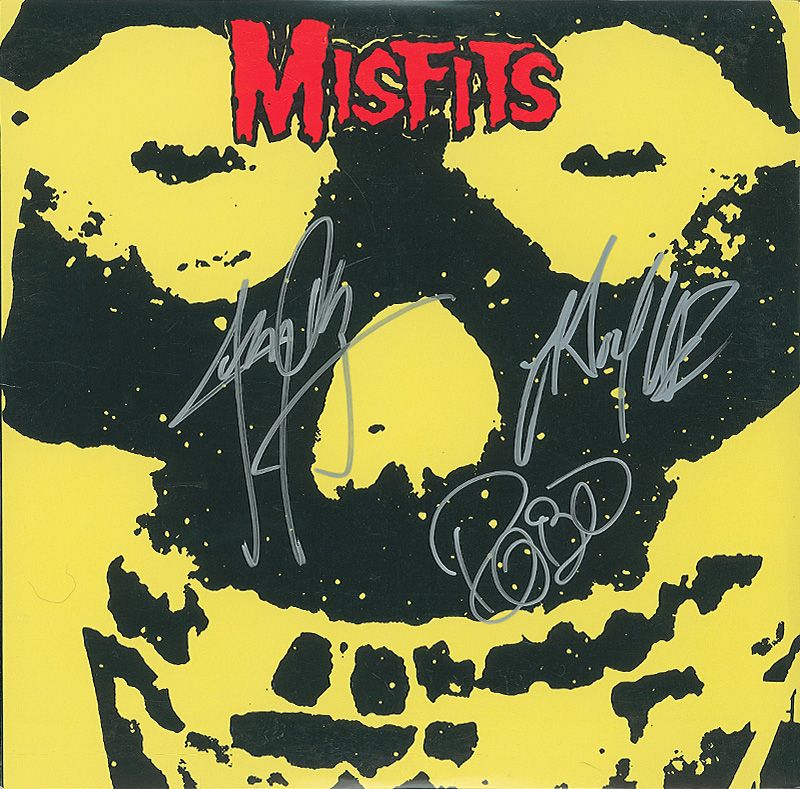Self-titled re-released album signed on the front cover in silver ink by Jerry Only, Doyle and Robo, and signed on the back cover in silver ink by Glenn Danzig. In fine condition. The record is included. It is common for Glenn to often times flip items over and sign on the opposite side as the rest of the band.