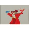 (Walt Disney Studios, 1959) Original production cel featuring The Mock Prince from Sleeping Beauty, showing the enrobed owl flanked by a pair of birds. Image measures 6.2 x 5.25, with a mat opening of 9.25 x 6.25. Matted to an overall size of 12 x 9, with the reverse bearing a gold 1959 Walt Disney Productions label stating: "This is an original handpainted celluloid drawing actually used in a Walt Disney production." In fine condition, with bumped corners to the mat.