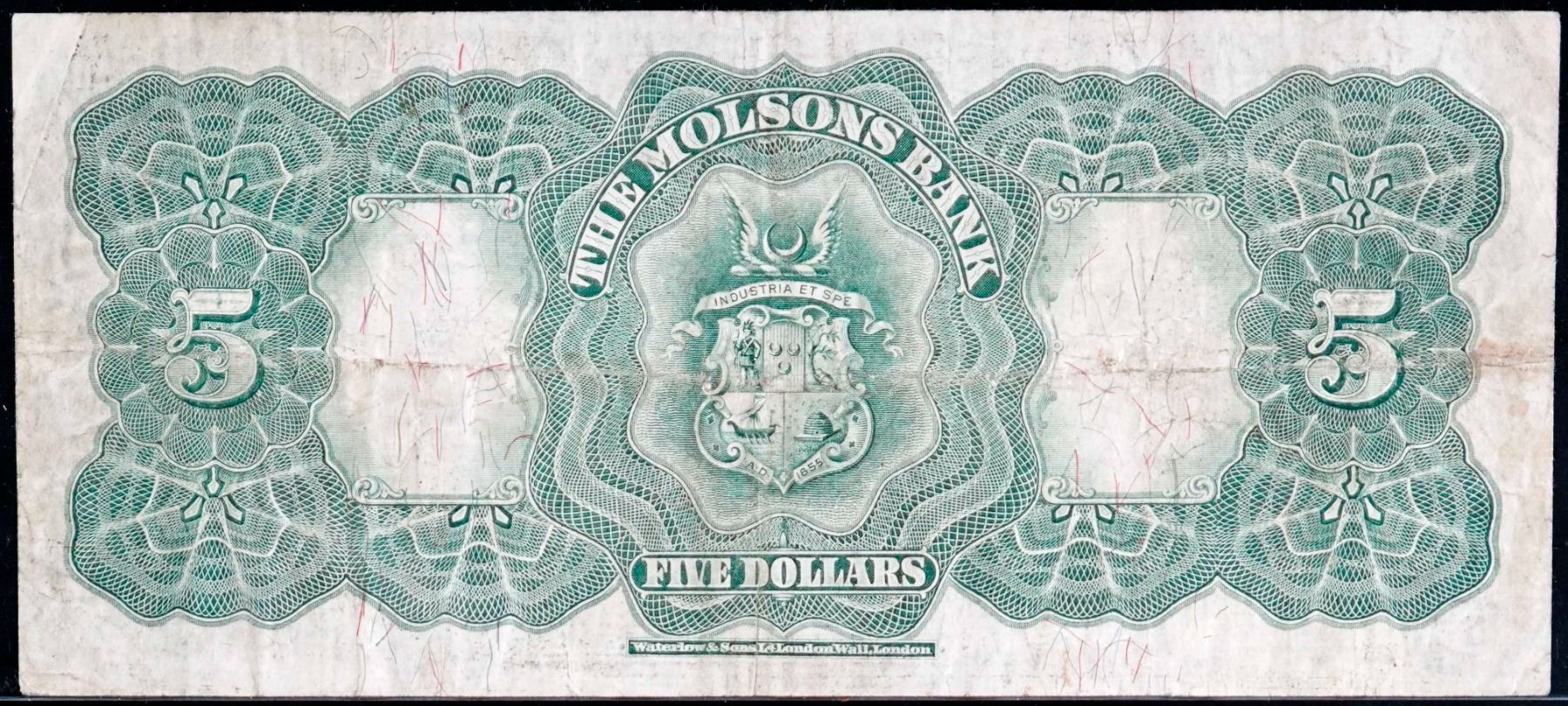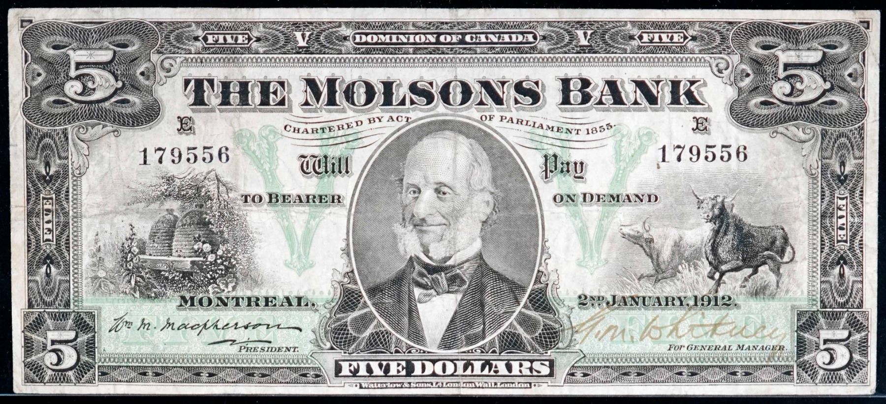 The Molsons Bank 1912 $5 #179556 CH-490-32-02 LCG Very Fine-20