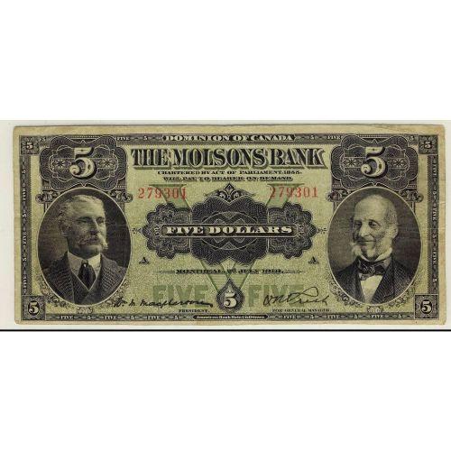 The Molsons Bank 1918 $5 CH-490-38-02 No.279301 F+