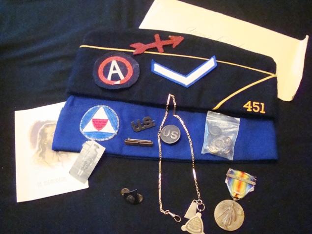 WWI veteran Ohio soldier's intact, personal artifacts and momentos incl two caps, pins, medal, discharge papers, etc. Member of the 331st Infantry, Company A, part of the AEF.