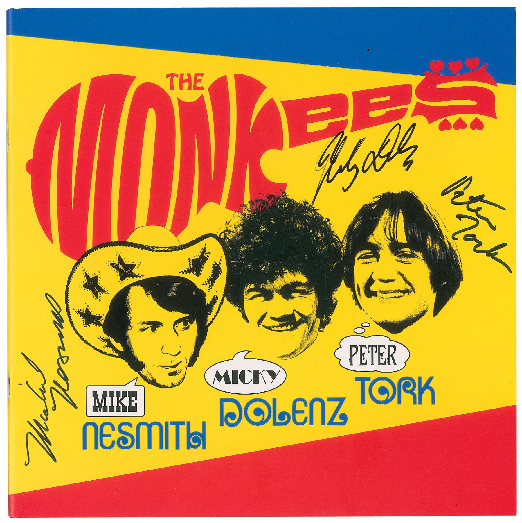 Official tour book for the 2013 Listen to the Band! tour by the Monkees, 12 x 12, signed on the front cover in black felt by Mickey Dolenz, Peter Tork, and Michael Nesmith. In fine condition.