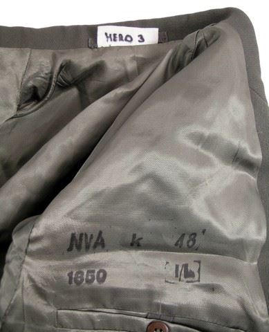 From the dramatic war feature film The Monuments Menwith an all star cast, is James Granger's (Matt Damon) hero screen used green long sleeve military jacket. This jacket has "Hero 3" written on the inside of the neck from the costume department.