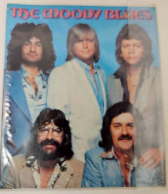 Vintage concert program featuring The Moody Blues. Bold photos and classic rock nostalgia from one of the pioneers of progressive music.