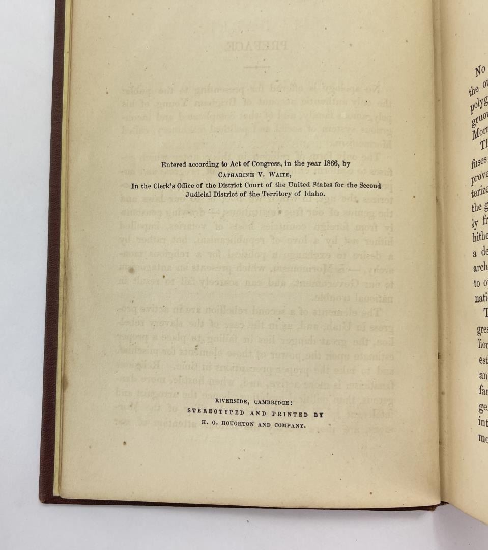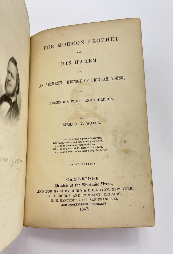 An Authentic History of Brigham Young, his Numerous Wives and Children. Mrs. C.V. Waite. Third Edition. 1867