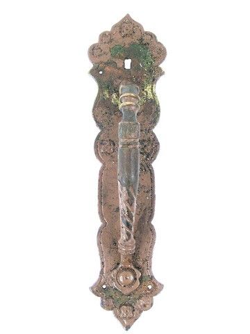 From the beloved ghoulish TV series of the 1960's, "The Munsters", this is a screen used ornate metal door handle. (approx. 14" x 3 1/2")