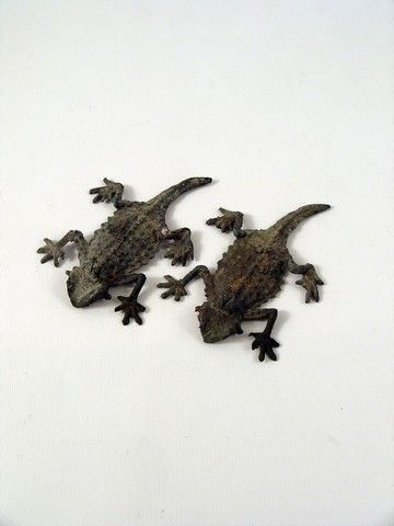 "The Munsters" (1964) are as fresh and beloved today as they were when they first aired. These are some background prop thin metal lizards used in their iconic haunted mansion. (Approx. 5" long each).