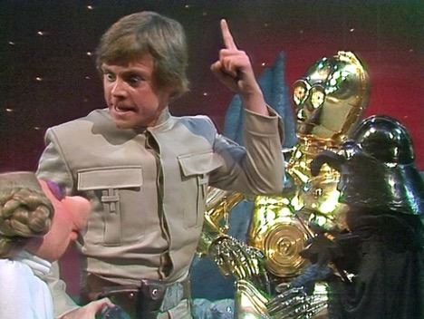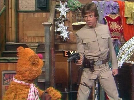 Mark Hamill’s costume from his momentous appearance on The Muppet Show, created by Jim Henson. During the episode, Kermit has booked Angus McGonagle, an Argyle gargoyle who can gargle Gershwin, when Luke Skywalker (Mark Hamill), C-3PO (Anthony Daniels) and R2-D2 crash through a wall and are searching for Chewbacca (Peter Mayhew). The search sees the Star Wars team hijack the Swinetrek, so First Mate Piggy substitutes herself for Princess Leia, and the crew finds that Chewbacca is imprisoned by "Dearth Nadir" (who is played by Gonzo).