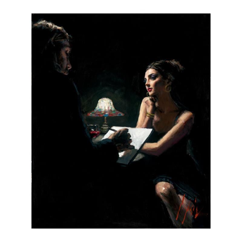 "The Muse" is a hand embellished limited edition giclee on stretched canvas by Fabian Perez. The piece is numbered and hand signed by the artist and comes with a Certificate of Authenticity. Measures approx. 18" x 15" (image). Please allow 5 additional business for items that include canvas stretch or framing.