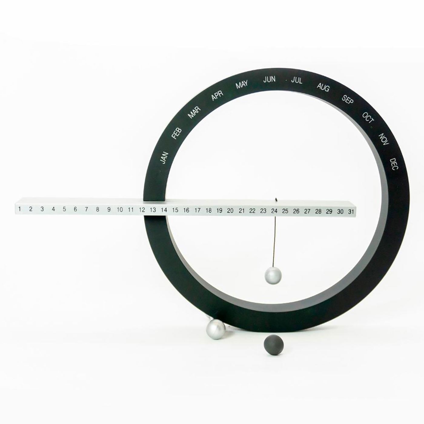 Black and silver coloration. Designed to be used year after year. Includes original box. Stand to place on table or may be wall-mounted. Made of injection-molded plastic magnets.