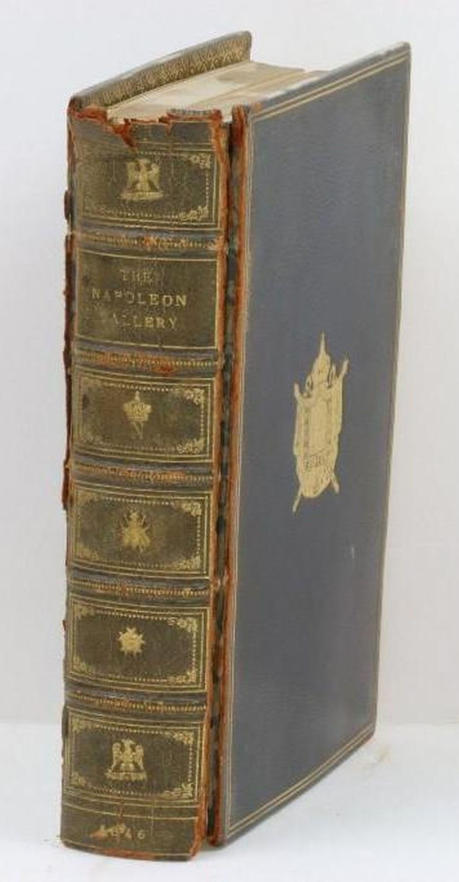 [NA]. The Napoleon Gallery; Or, Illustrations of the Life and Times of the Emperor of France. London: Henry G. Bohn, 1846. 12mo. Full navy straight-grained morocco in fine gilt Napoleonic binding by Riviere & son, all edges gilt, original upper cover and spine bound in. 98 plates including frontispiece. Spine rubbed and faded, joints cracked but holding, generally bright and clean, light toning to edges.