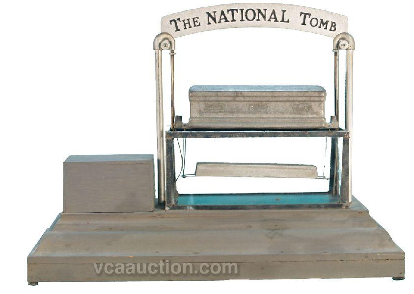 "The National Tomb" Salesman Sample Coffin Display, shows the coffin in water to prove it will not leak. MFG by The National Grave Vault Co. Galion, OHIO.