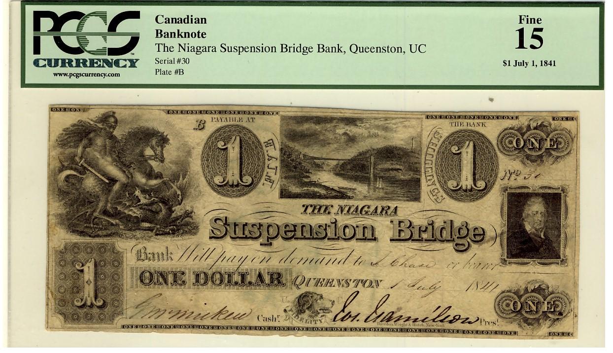 The Niagara Suspension Bridge 1841 $1 30 CH-535-10-08-02 PCGS F15