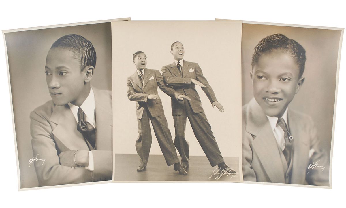 Two State of California income tax forms, each one page both sides, 8 x 3.5, July 26, 1940, one signed “Fayard Nicholas” and the other “Harold J. Nicholas.” In overall fine condition, with expected document wear. Accompanied by three fantastic unsigned vintage matte-finish 11 x 14 photos of the brothers.