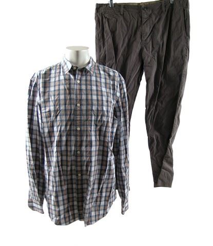 Isaac (Seth Rogen) screen worn, hero, blue, navy, and white plaid long sleeve button front 'Banana Republic' shirt, (size XL) and green 'Gap' pants. (size 38/34) Includes wardrobe tag.