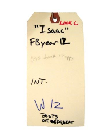 Isaac (Seth Rogen) screen worn in flashback scene year 12, charcoal, green, and red knit diamond print half button shawl collar 'Lelavret' sweater, (size L) green with candy cane on the turtle neck long sleeve shirt, and dark blue denim 'J. Crew' jeans. (size 38) Includes wardrobe tag.