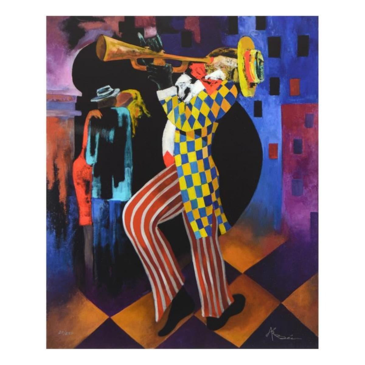 "The Night is Young" is a limited edition giclee on canvas by Arbe, numbered and hand signed by the artist. Includes Certificate of Authenticity. Measures approx. 24" x 30" (image).