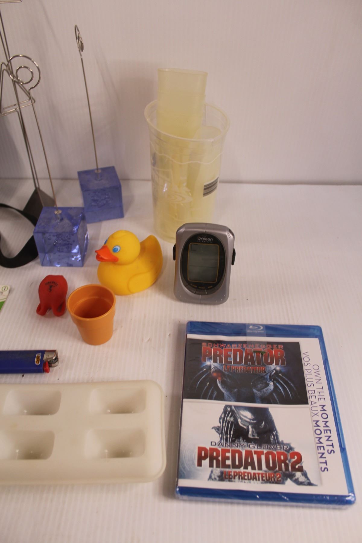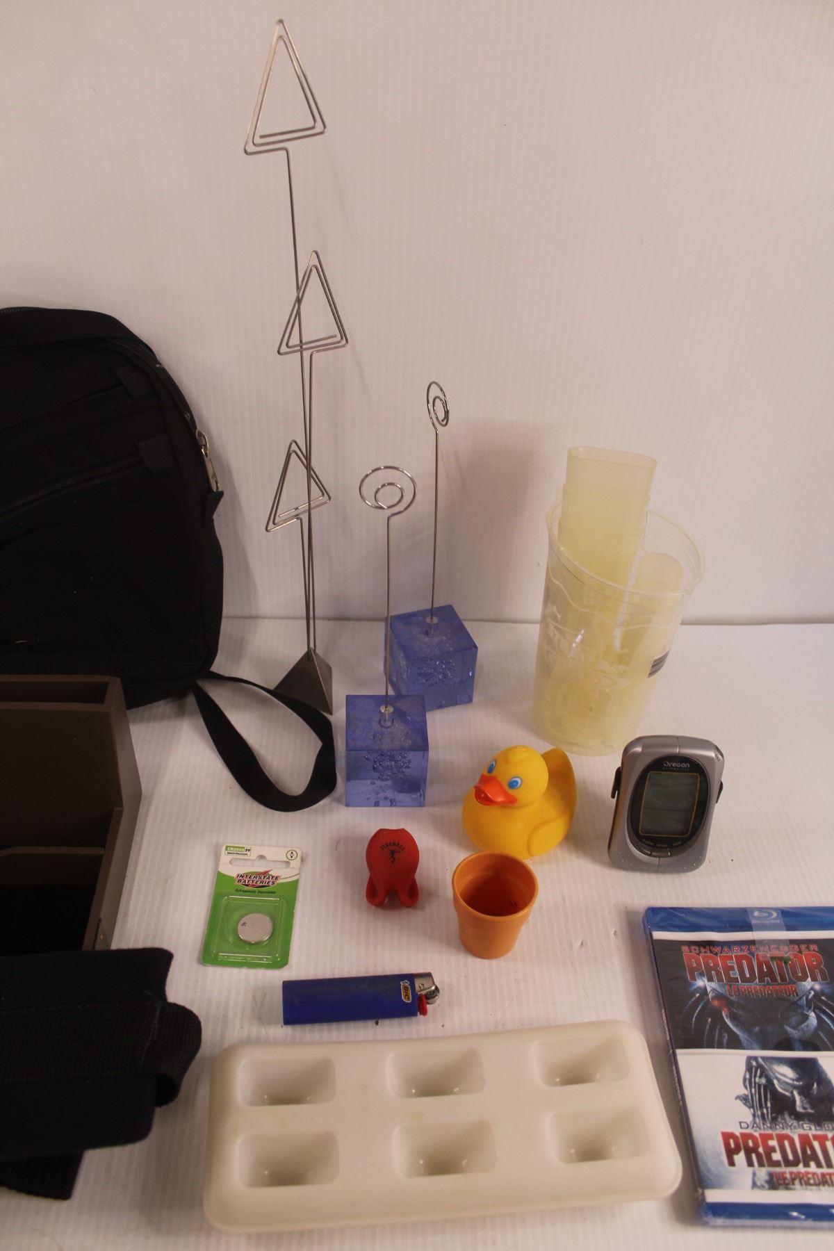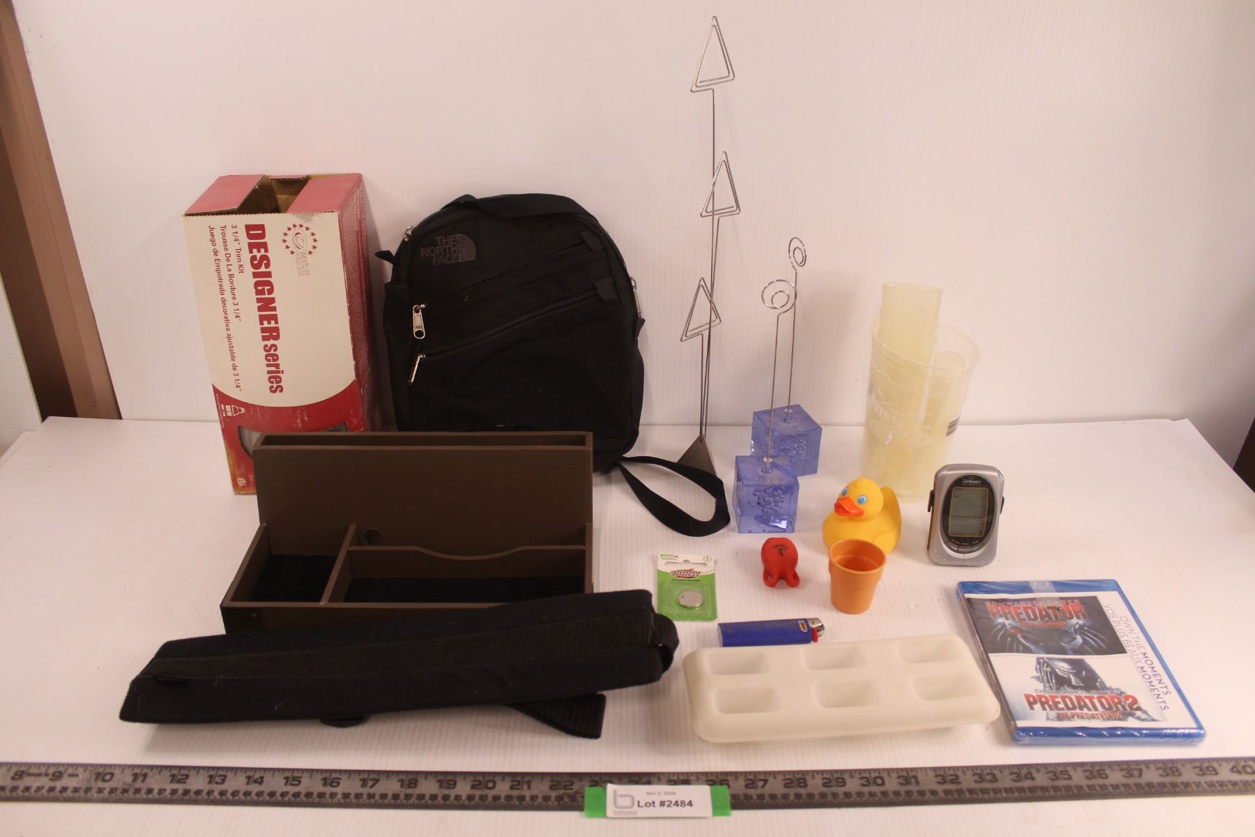 The North Face Side Satchel, Nextlite 3 1/4" Trim Kit, Decorative Glass Cube and Metal Pyramid Ornaments, Popsicle Maker Trays, Predator/Predator 2 Blu-Ray DVD, Misc.