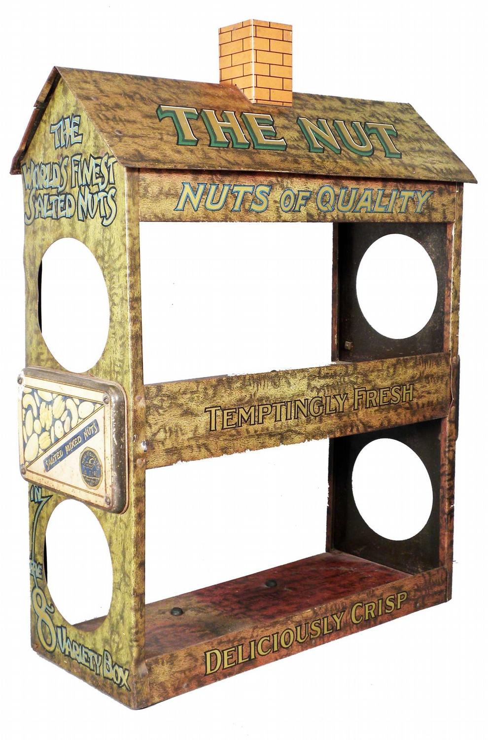 The Nut House Tin Store Display. "The worlds finest salted peanuts". Very good all original condition. 18 X 24 1/2X 7 inches.