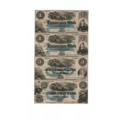 1757 - THE ZIMMERMAN BANK. $1.00, $1.00, $3.00, $5.00. 185-(1854-59). CH-815-12-08-02R, 02R, 04R, 06R. An uCharles Moore / Canadian Coin & Currency