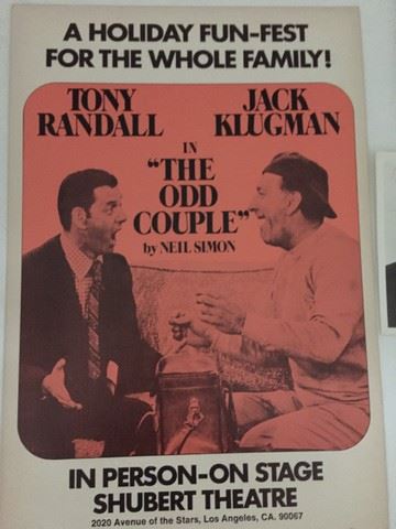 The Odd Couple play cardboard poster with signed autographs of each. This poster is from the estate of a woman that worked at the Shubert Theater in Los Angeles for many years. She collected many items over the years and became frineds with many of the ators and crew of several productions.