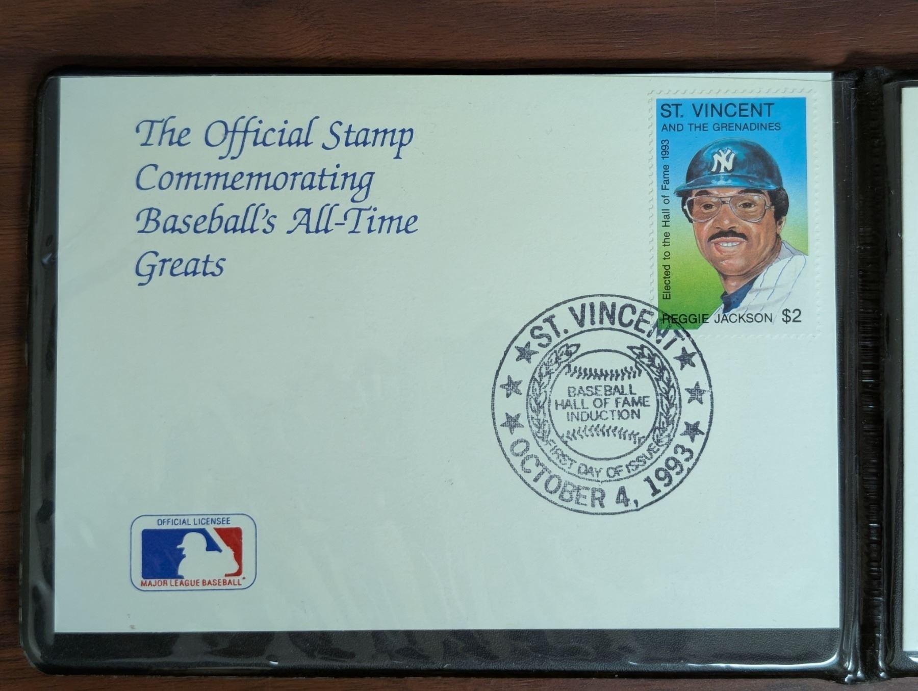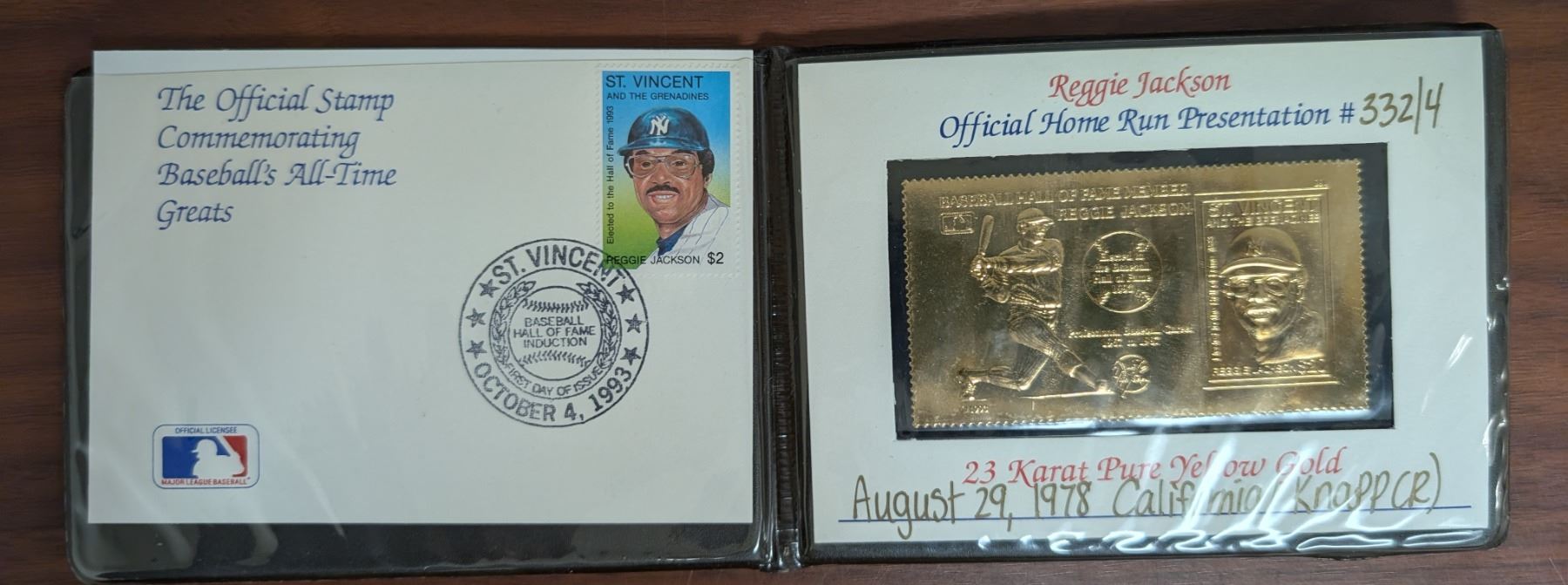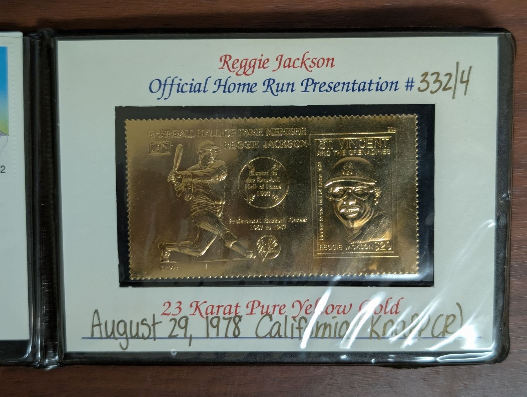 The Official Stamp Commemorating Baseballs All-Time Greats St Vincent October 4th, 1993 Reggie Jackson 23 Karat Yellow Gold August 29, 1978
