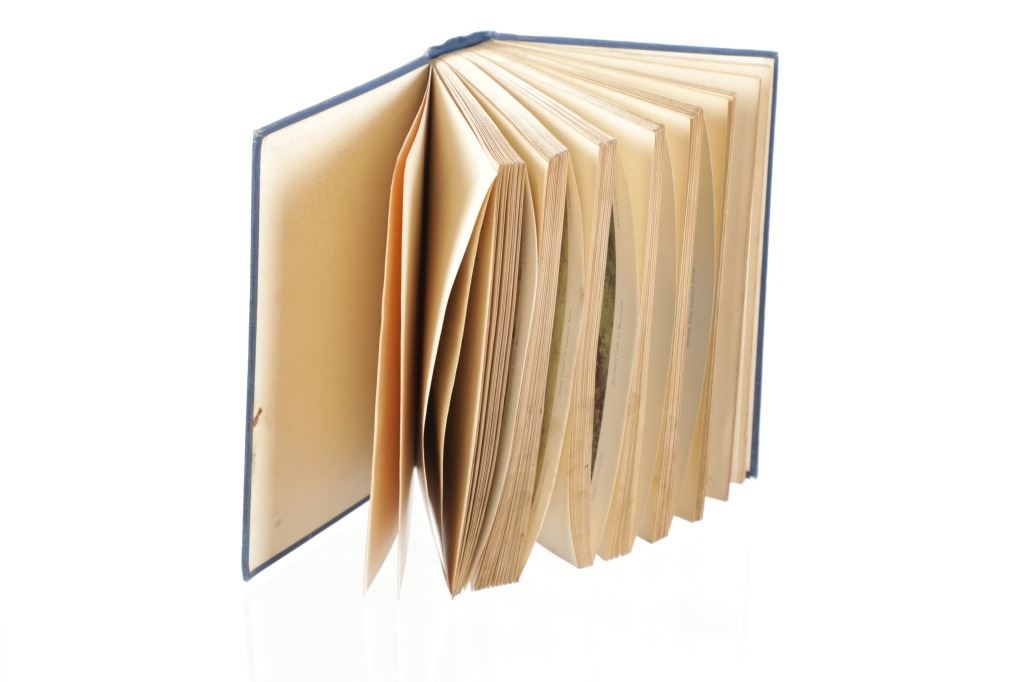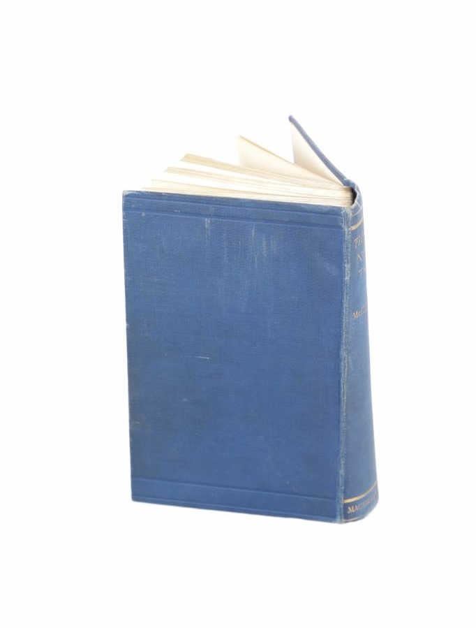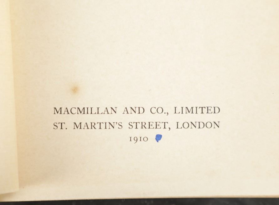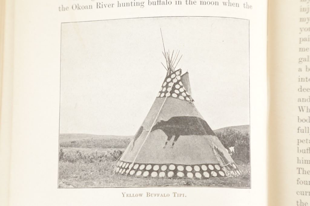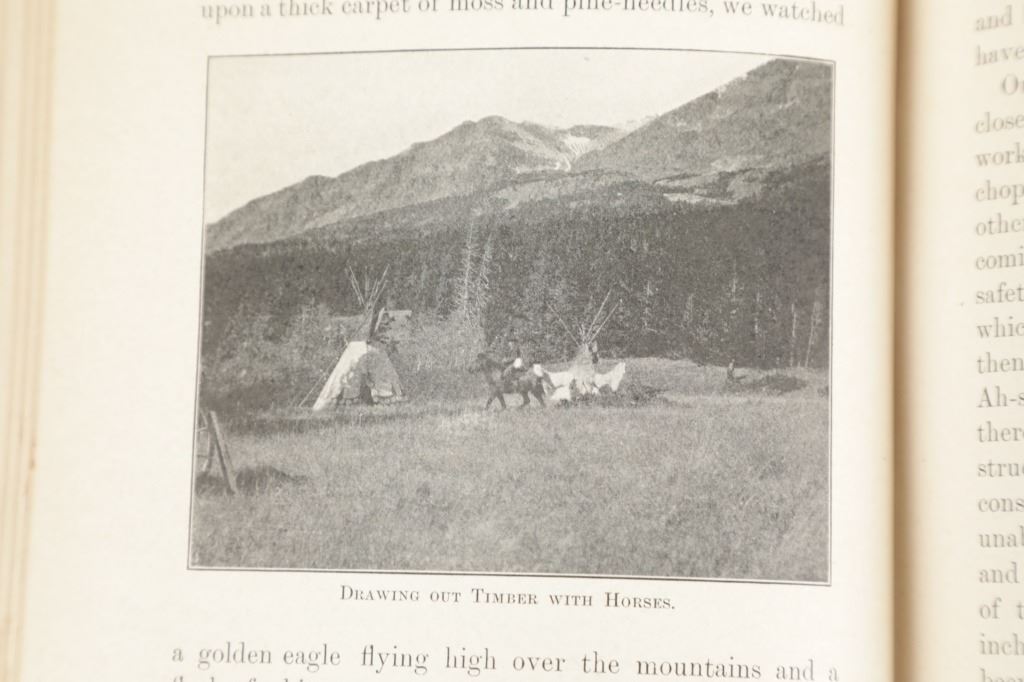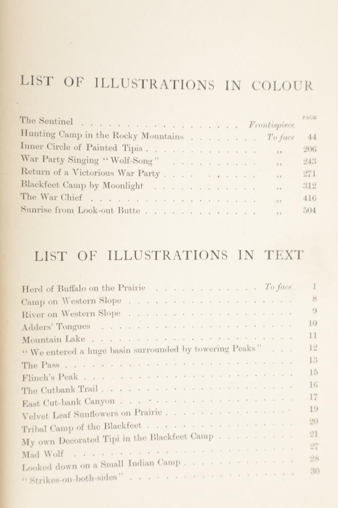 Featured in this lot we have a First Edition of "The Old North Trail" by Walter McClintock, 1910, Macmillan and Co., Limited, London publisher. "The Old North Trail or Life, Legends and Religion of the Blackfeet Indians" details the first person experiences and adventures of the author among the Blackfeet tribe. The book contains numerous colored illustrations and black and white photos. McClintock went to northwestern Montana as a member of a U.S. Forest Service expedition. He spent the next four years living on the Blackfoot Reservation as the adopted son of Chief Mad Dog, the high priest of the Sun Dance. Fold-out map, "The Country of the Blackfeet Indians" attached on page 533. Original blue cloth bound gold gilt stamped illustrated hardcover is in nice condition, gold gilt is still bright. Front cover stamped illustration is the same as frontispiece. Very slight scuffing noted. Intact pages feature gold gilt top edge, age tanning and foxing observed. Measures 5.5"W x 8.75"L x 1.5"D, weight 2lb, 10oz.