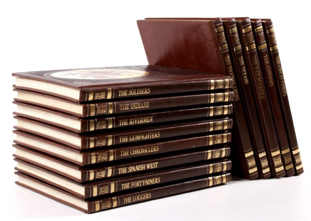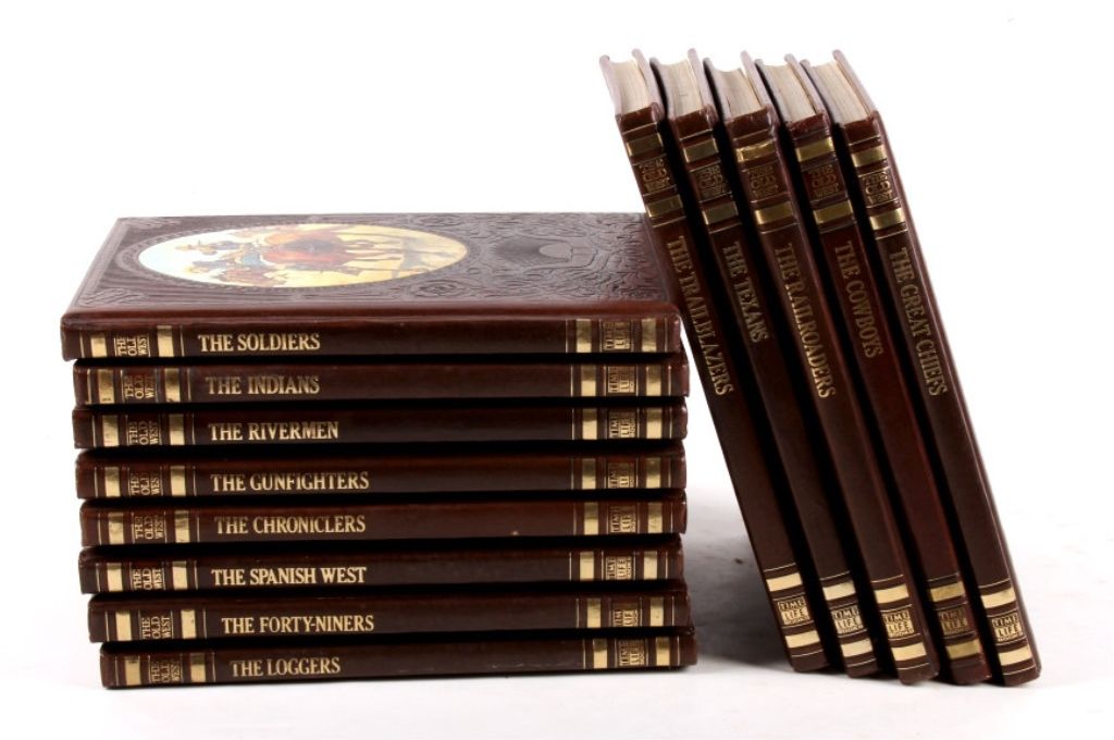 This is a collection of 13 "Old West" Books made by Time Life Books in the 1970's. Each book has a beautiful top with the appearance of tooled plush leather (not leather) and a unique Western Picture. Each book deals witha unique topic such as The Indians, Trains, Stage Coaches, and etc.. showing great details and pictures. each book is 8.5"x11"