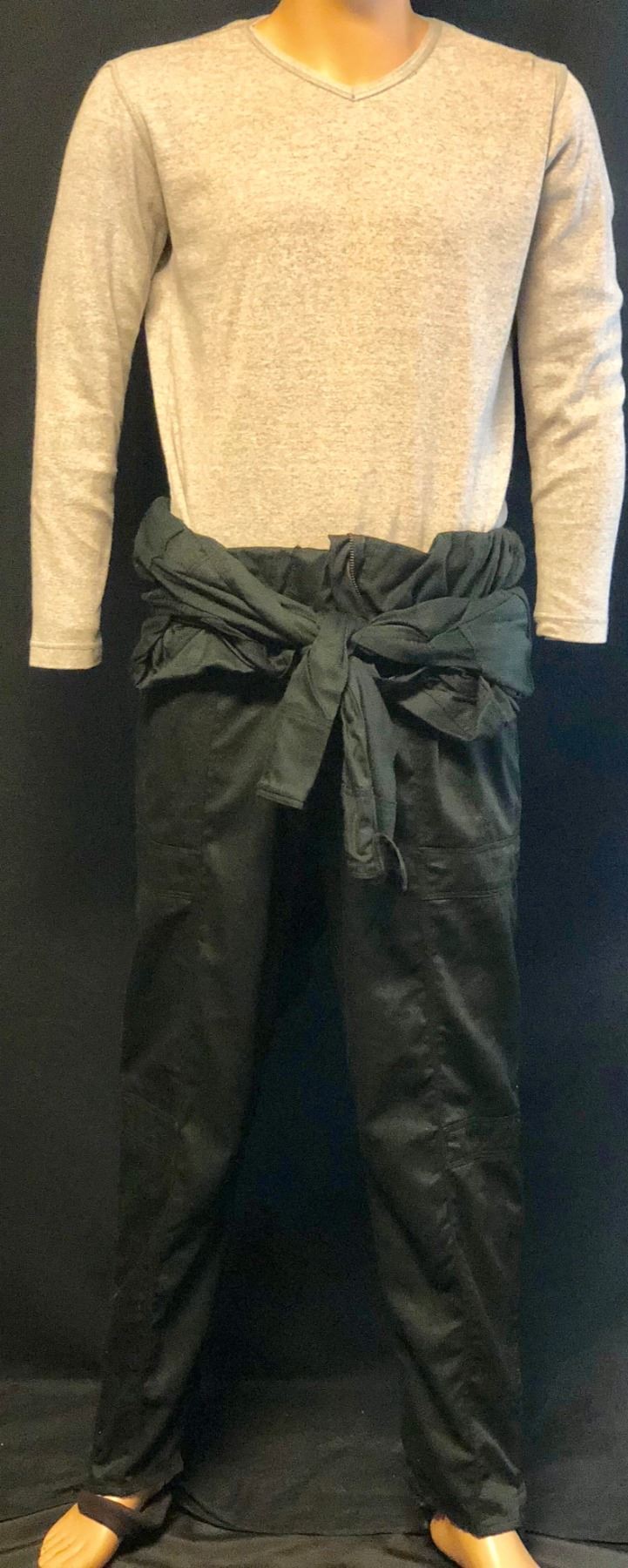Screen worn hero jumpsuit and shirt worn by "Gabe law", played by Jet Li in the production of The One (2001), the science fiction-martial arts movie where, a rogue Multiverse agent goes on a manhunt for versions of himself, getting stronger with each kill. With only one version remaining, he races against the clock to finish him and become "The One."