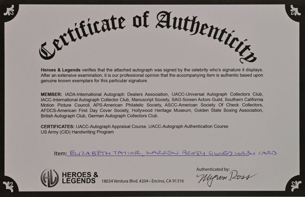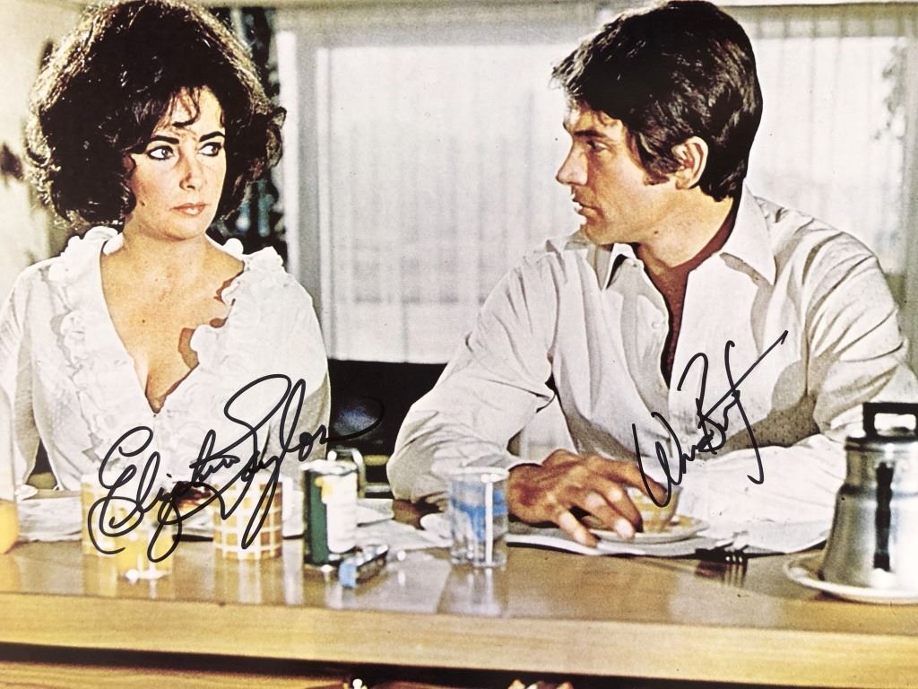 The Only Game in Town signed lobby card autographed by Elizabeth Taylor and Warren Beatty. 11x14 inches. HL7932