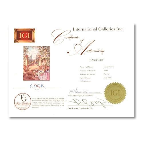 The Open Gate by Ginger Cook is a Limited Edition Giclee on canvas bearing Publisher's Stamp of Authenticity. Measures appx. 30.75" x 41" (image).