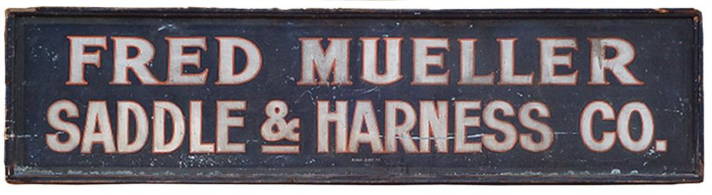 The original sign from the Fred Mueller building in Denver, measuring 10’ 2” x 32 1/2”