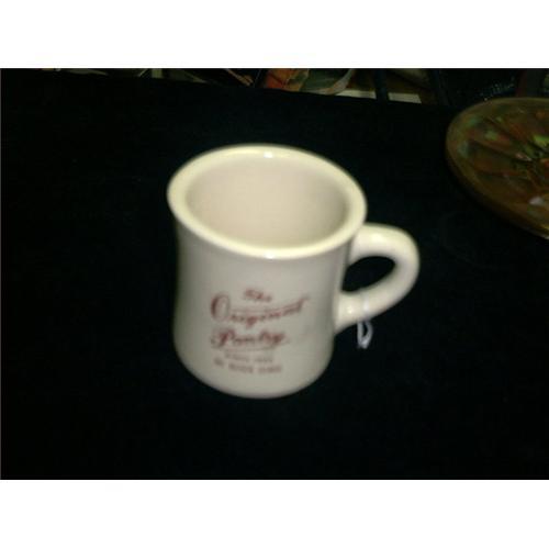 The Original Pantry Coffee Cup Signed. This is one that goes back a few years. The original pantry coffee cup since 1924 saying the name date and we never close. The back says ULTIMA CHINA RR. It is about 4" H and 5" with handle. In perfect condition for it's age and still looks great. I can remember this place when I was a kid. Well, that is another story. It is a nice collectible item and also a great gift to anyone who collects old coffee mugs. Hope you like it. Came out of a nice estate in their garage.