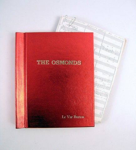 Among his work as an actor and director, LeVar Burton also has become a great guest star from everything from Variety shows to Talk Shows to documentaries. This is a beautiful leather with gold stamped lettering script cover, with the full script and sheet music for LeVar Burton's appearance on the 'Osmond Family Show" on March 4th, 1979. The special cover has "The Osmond's" on the front, with Le Var Burton printed, also in gold lettering on the lower right hand corner. Comes from Mr. Burton's personal collection.