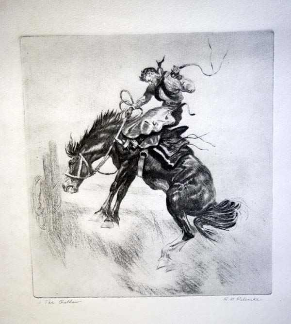 The Outlaw Print by Reinhold H. Palenske, visual measures 8.5''L x 8''W, some staining on border of white paper, FYI: Reinhold H. Palenske (American, 1884-1954)