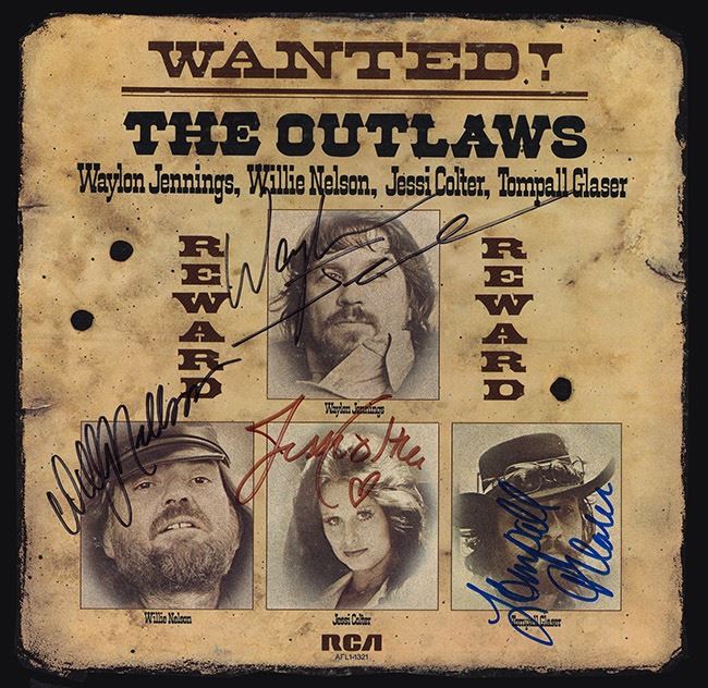 Signed by Waylon Jennings, Willie Nelson, Jessi Colter, and Tompall Glaser .This item comes with a Certificate of Authenticity from a third party authenticator. This Certification of Authenticity does not imply that the item will be certified by any other rival authentication companies. The accompanied certification is the only certification the auction company can confirm. These items are being sold as collectable pieces and there is no guarantee that this item can be resold on any online marketplace. Each of these companies has their own policies and politics.
