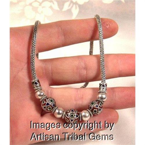 PLEASE note I only ship to the continental USA and Canada and if paypals is used the address MUST BE CONFIRMED<p>...MOST Elegant THAI ENAMEL Sterling Silver Necklace... The necklace have measurements of 17" in length with the round beads measuring 11mm in diameter and for those not familiar with metric 25mm=1". The gram weight is 31.9. If you adore enamel of the highest quality this comes with our highest recommendations.