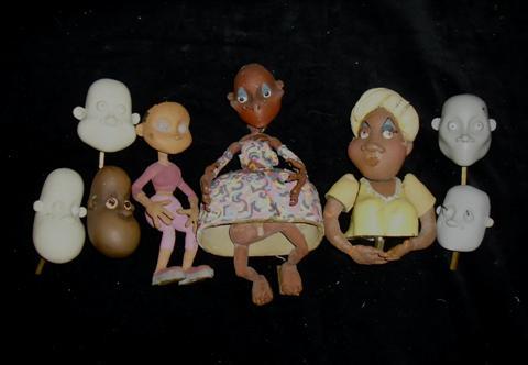 The PJ's Animated Series (1999 - 2002) - A collection of supporting cast including "Haiti Lady" and others. Original production made and used stop motion puppets from the loved Eddie Murphy series, The PJ's, which was produced by Ron Howard and Brian Grazer and animated by Will Vinton. Two full bodies, a half body and five heads, four of them hard resin with one marked "master". Haiti Lady's heads and legs are detached, but can be easily glued back in place.