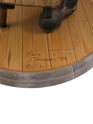 From the incredible adventure story, The Pagemaster (1994) is a 3D model prop used to assist in the animation segments of the film. It is signed and dated by the artist on the base. It is for the character, Adventure the Pirate Book, with the voice by Patrick Stewart. Model does not have the hook on one hand. (approx. 10" x 13 1/2")